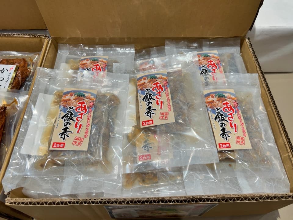 今回は港町・焼津の逸品から、マグロ・カツオ・アサリの佃煮と、炊き上げたご飯に混ぜるだけの混ぜ込みご飯の素などをご用意しました。