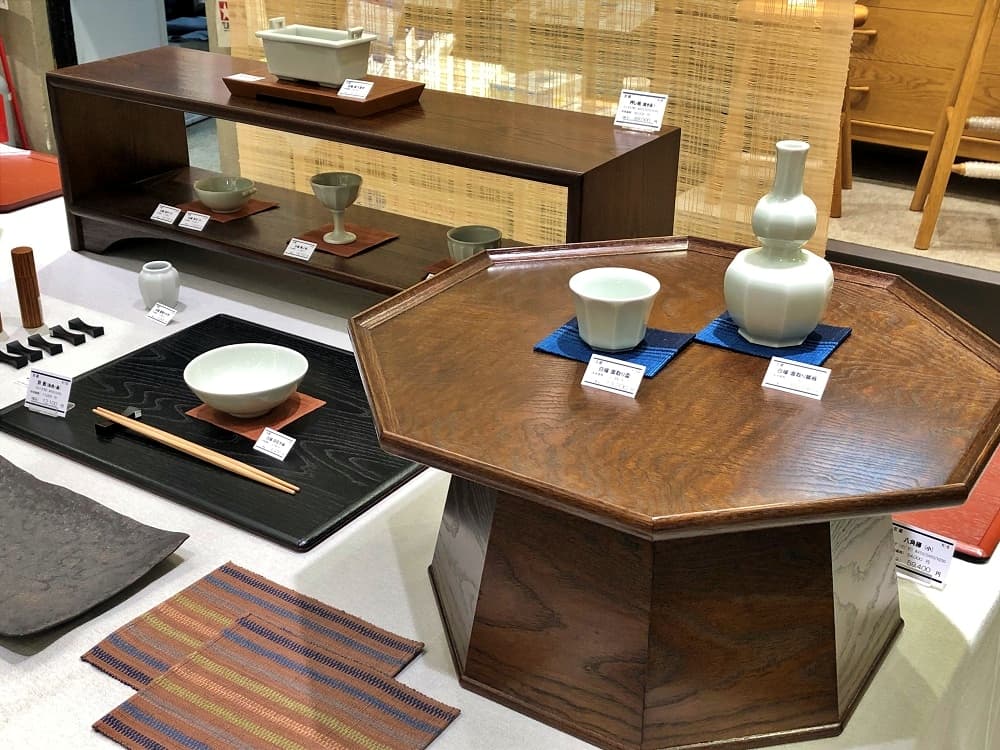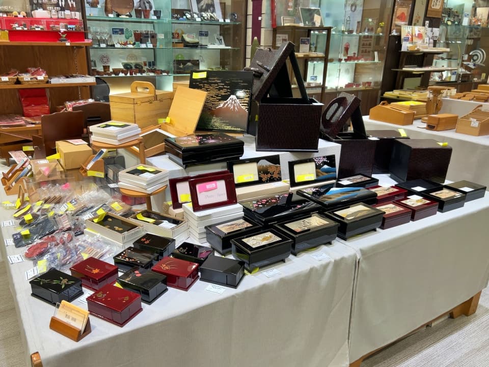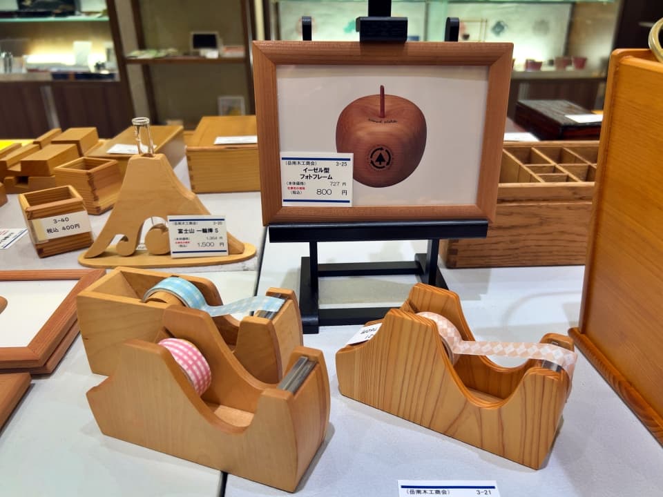 駿府楽市店内、展示コーナーでは静岡の誇る工芸品、民芸品、地場産業等をより広く紹介しています。