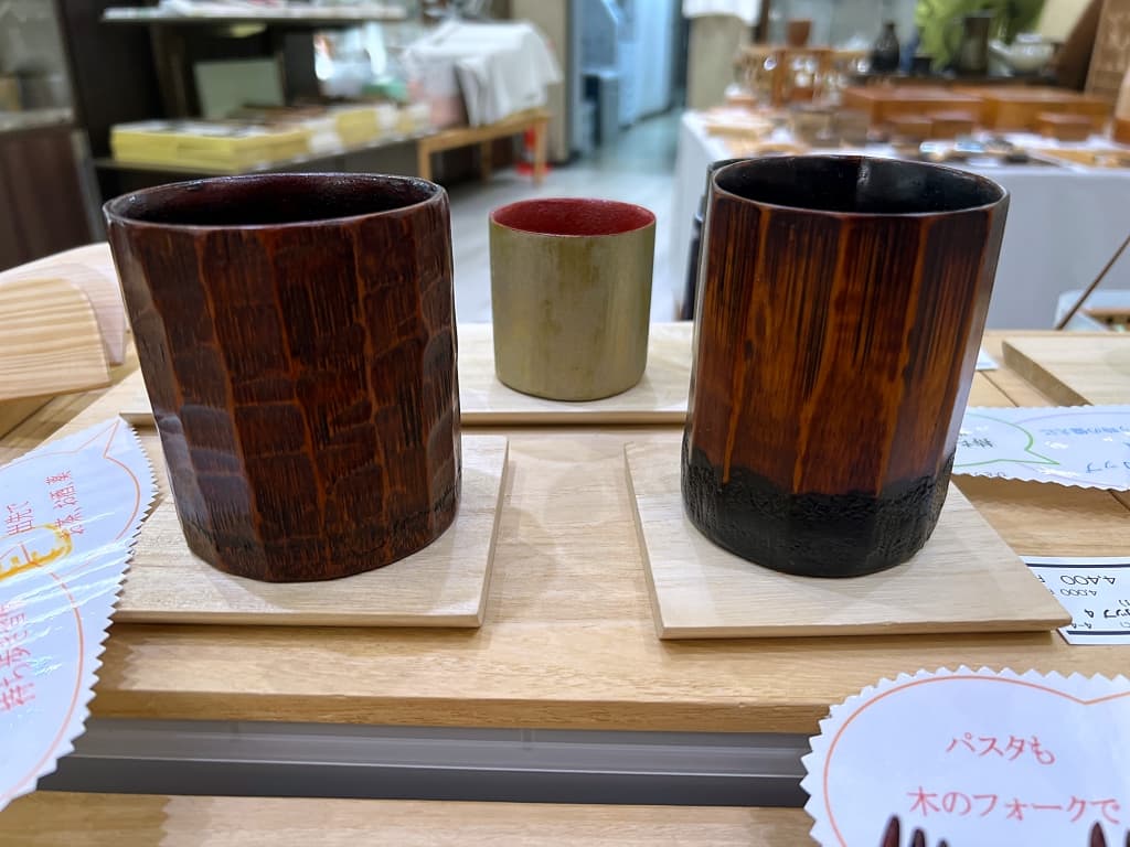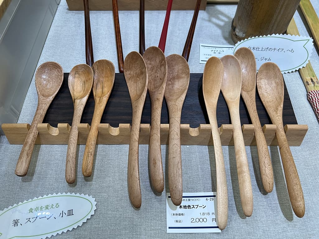食卓を彩る木のスプーンや陶器、瓦や真田紐を使ったアクセサリーなど、おすすめの手作り作品を展示紹介します。